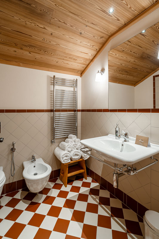 C’è tutto per il tuo benessere: la vasca, la doccia, e una vista sullo Zerbion che da sola vale il viaggio.
