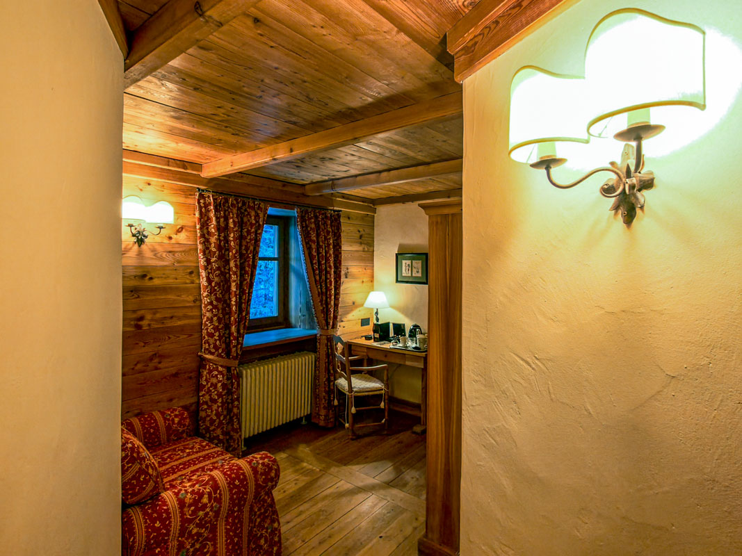 Troverai un ambiente spazioso con un angolo dedicato al tuo relax e arredi che raccontano l’essenza più autentica della montagna.