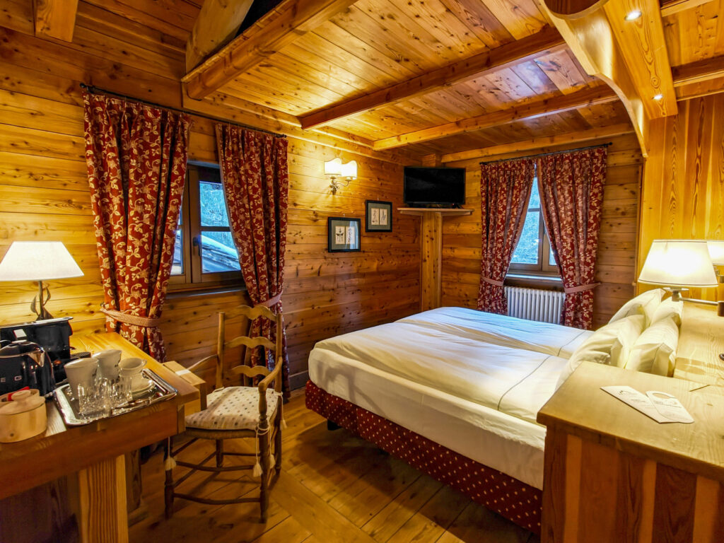 Una stanza che sembra parlare piano, invitandoti a respirare lentamente, a lasciarti avvolgere dal calore, dal silenzio, dall’essenza dell’ospitalità alpina.