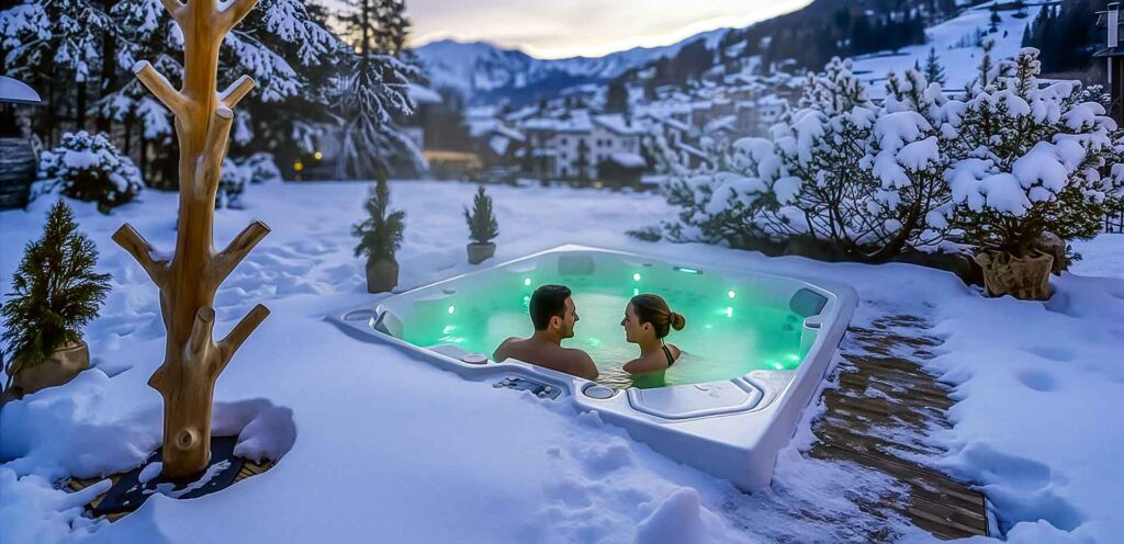 Dopo la neve, il calore. Immergiti tra il vapore dell’idromassaggio esterno e l’aria cristallina che profuma di neve.